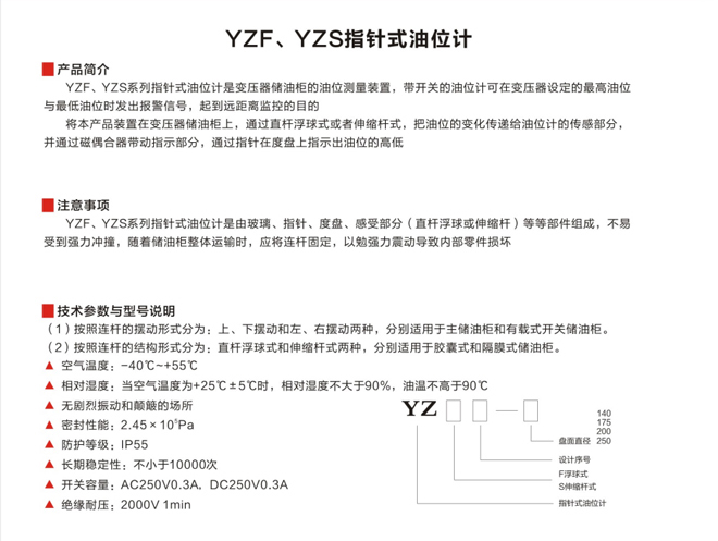 YZF、YZS指针式油位计