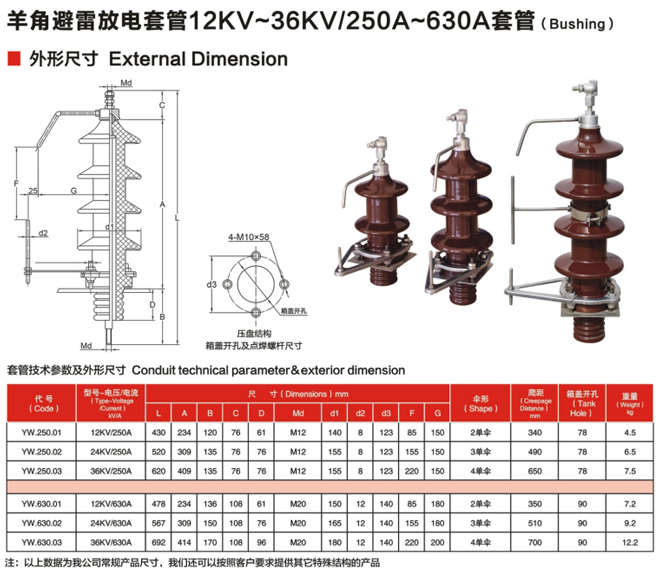 羊角避雷放电套管12KV~36KV/250A~630A套管(Bushing)