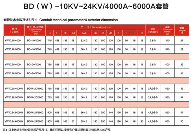 BD(W)-10KV~24KV/4000A~6000A casing pipe