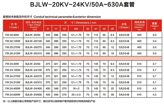 BJLH/BJLG-10KV~24KV/50A~315A casing pipe