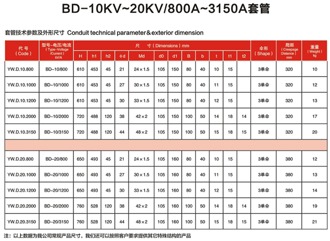 BD-10KV~20KV/800A~3150A(T type) casing pipe